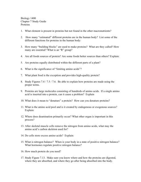 Biology 1400 Chapter 7 Study Guide Proteins 1 What Element Is